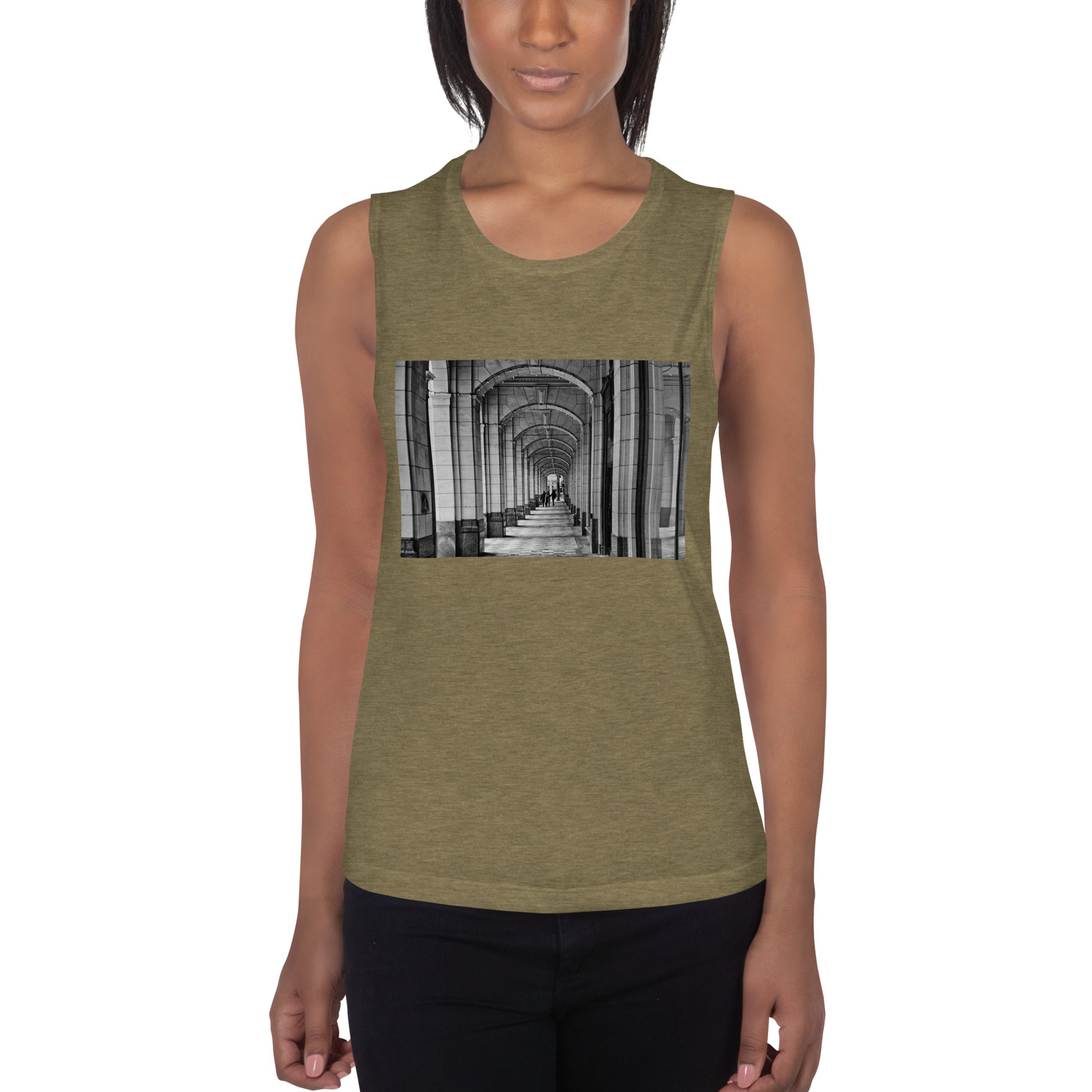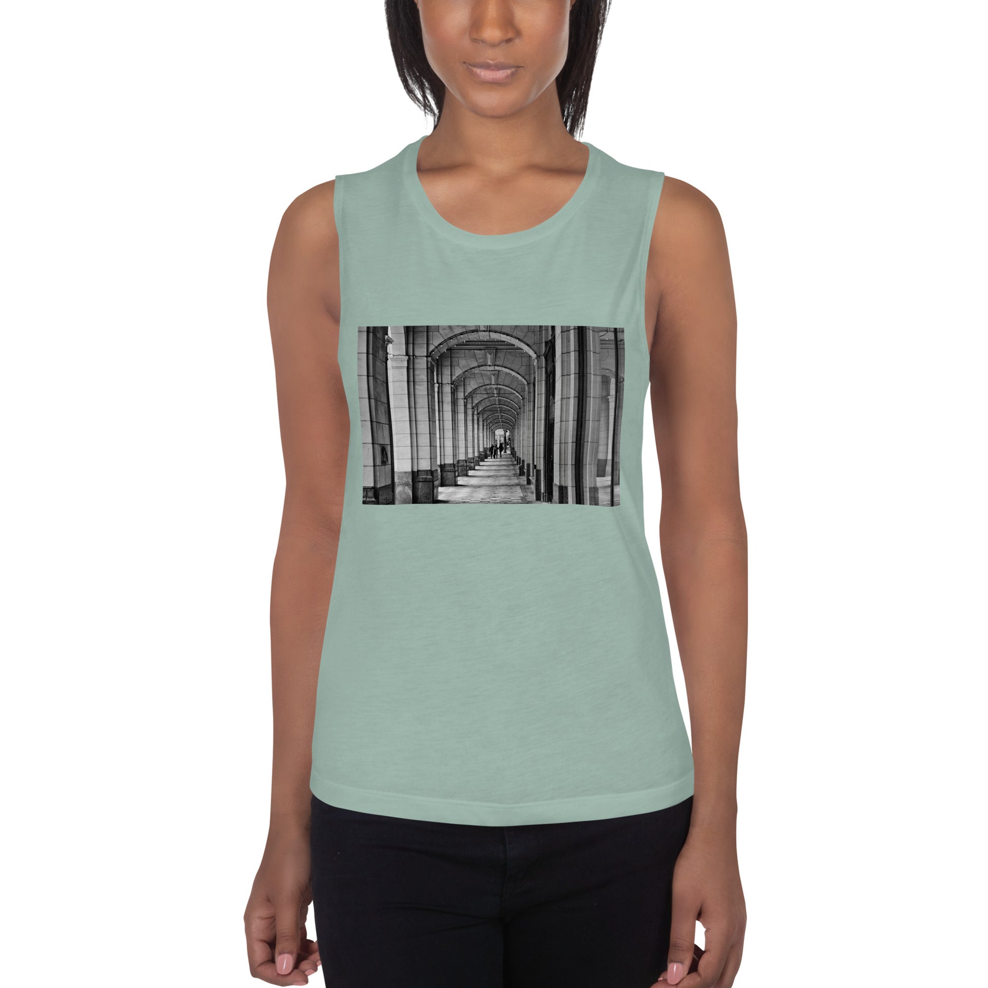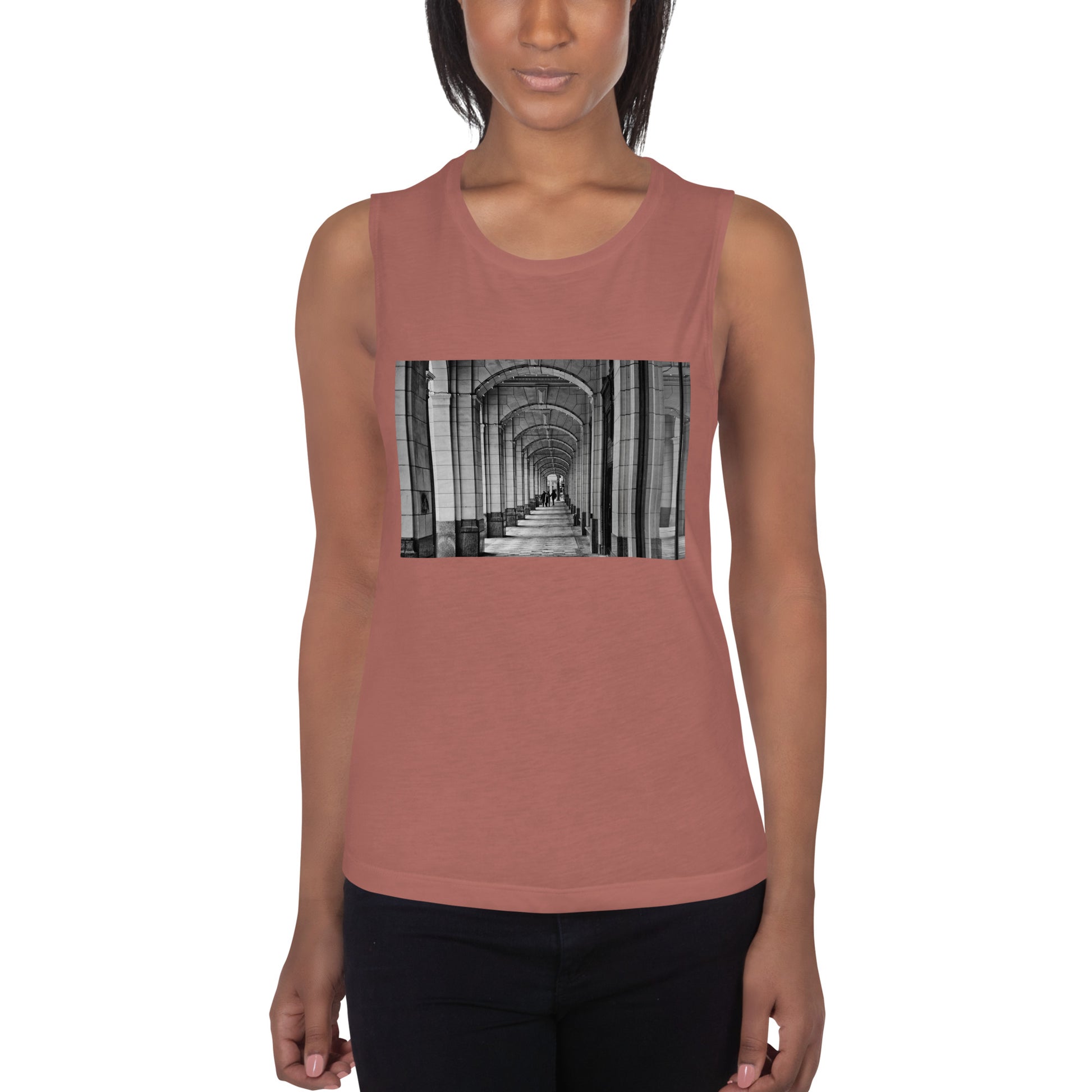 Ladies’ Muscle Tank - Downtown Calgary Hudson's Bay Sidewalk Black and White