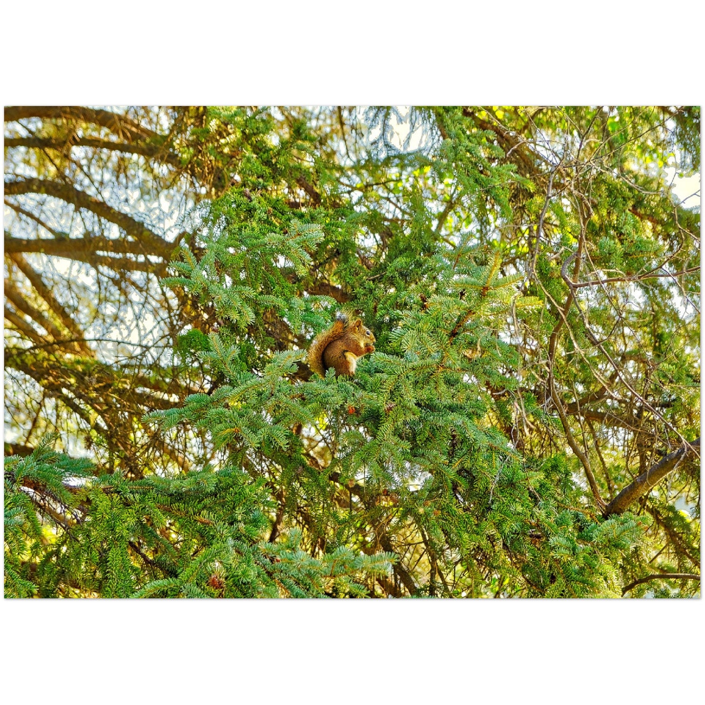 Get this semi-glossy poster print with the image of the squirrel eating in a tree along the Lake Annette Trail.