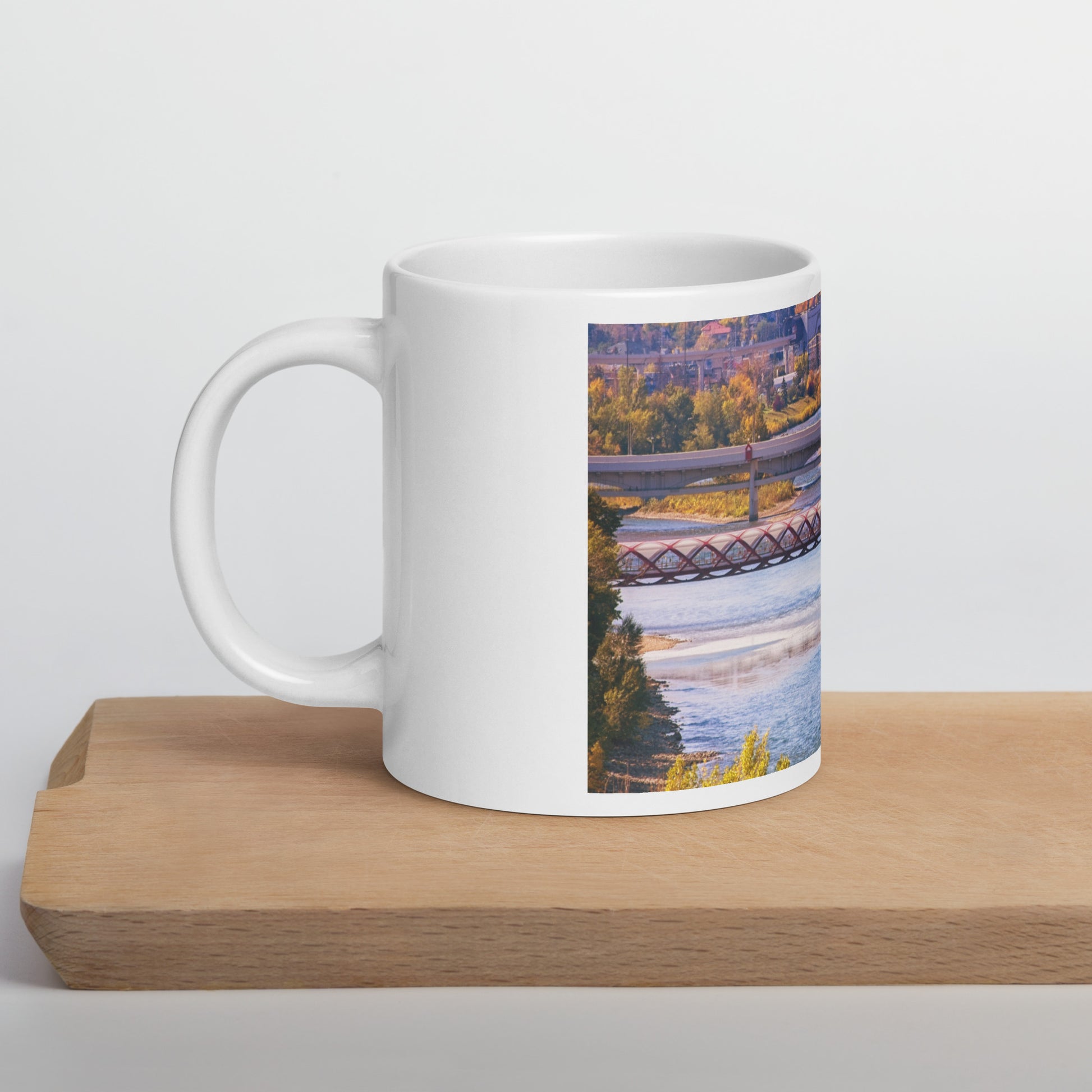 White Glossy Mug - Peace Bridge McHugh Bluff Fall
