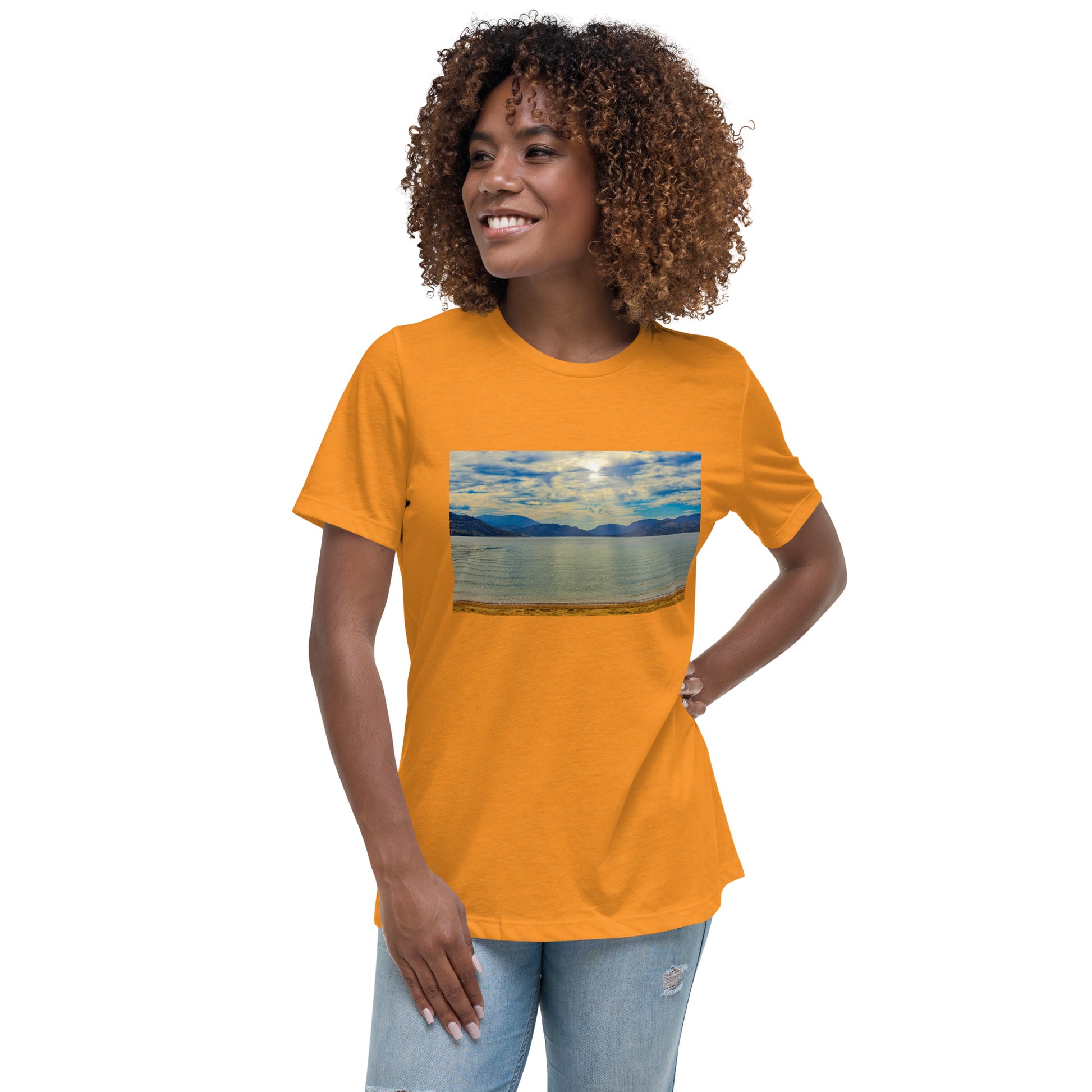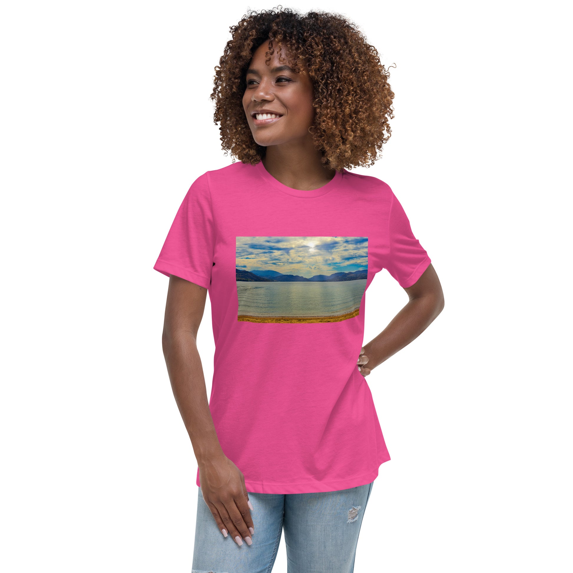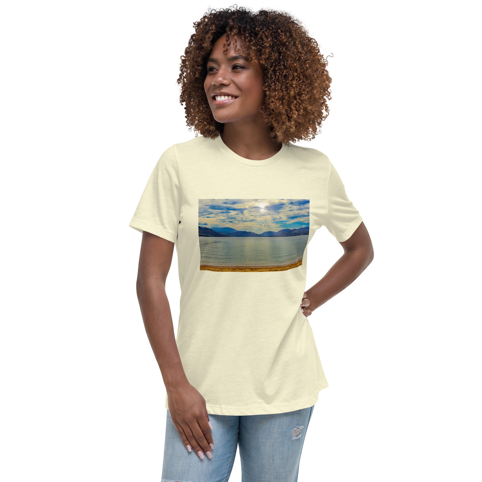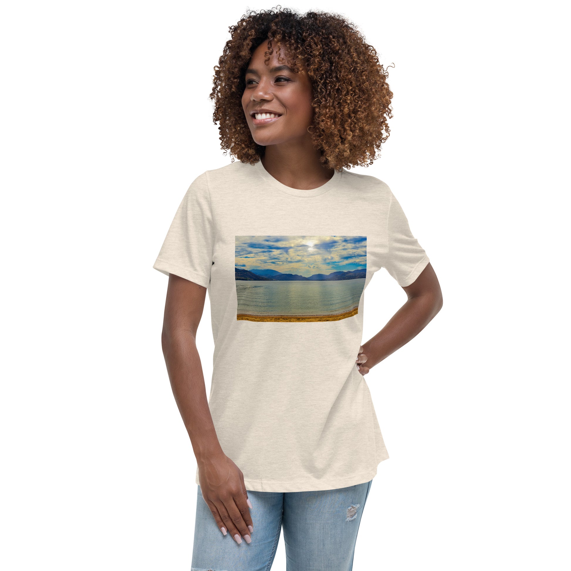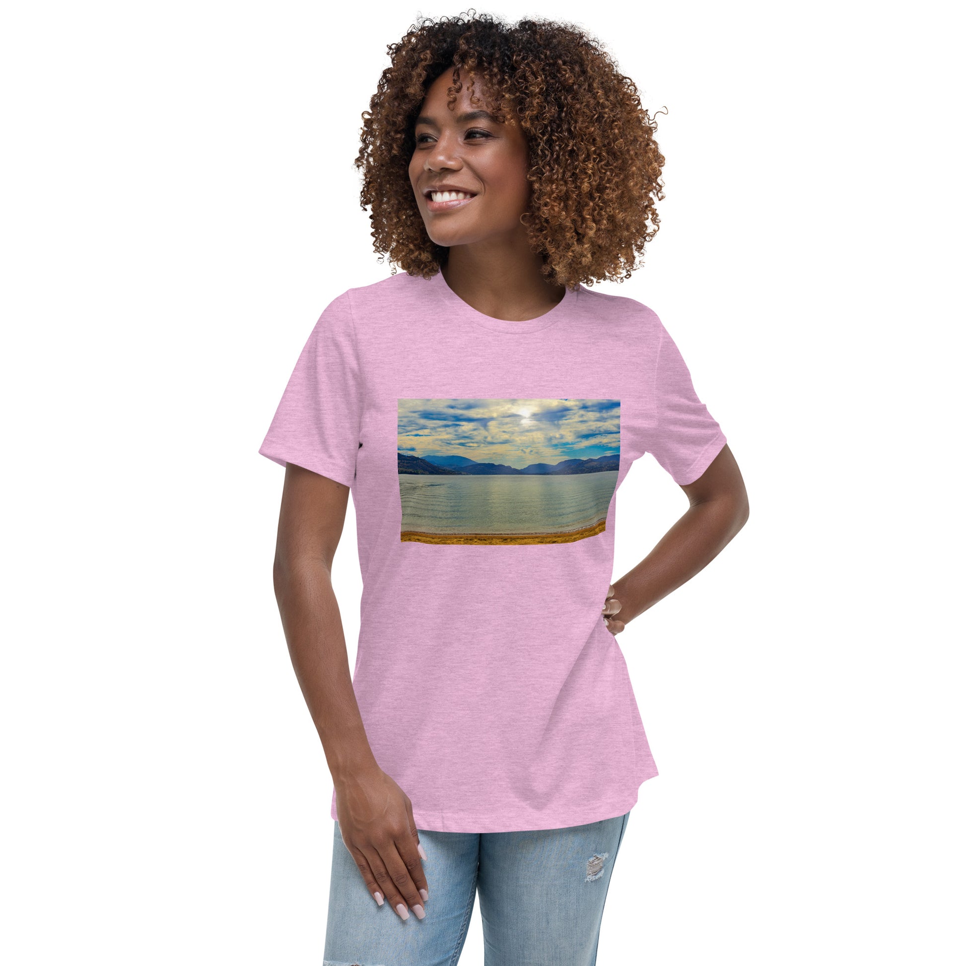 Get this women's relaxed T-shirt with the image of Skaha Lake in Penticton.